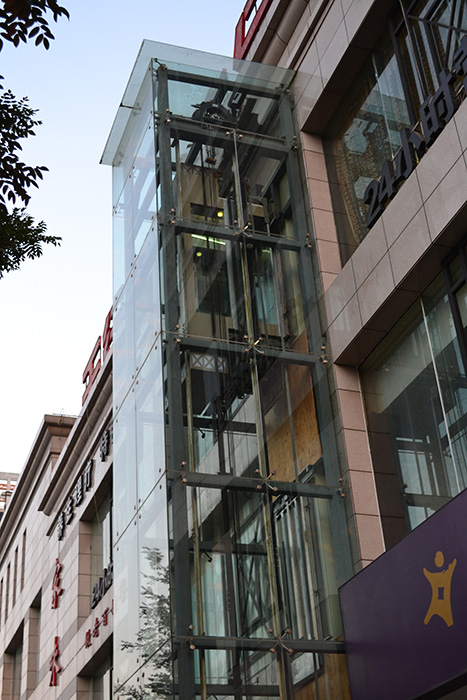 观光电梯一种以电动机为动力的垂直升降机,装有箱状吊舱,用于多层建筑乘人或载运货物。有一面或几面的井道壁和轿厢壁是透明材料,乘客在乘坐电梯时,可以观看轿厢外的景物。